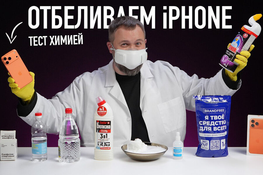 Wylsacom проверил, как бытовая химия повлияет на окраску оранжевого iPhone