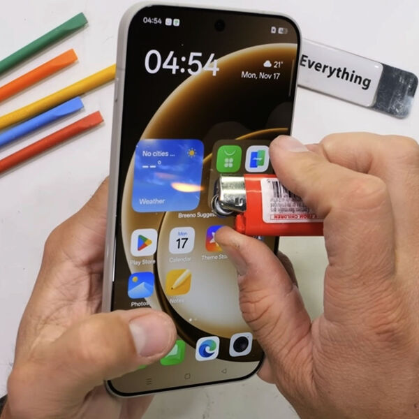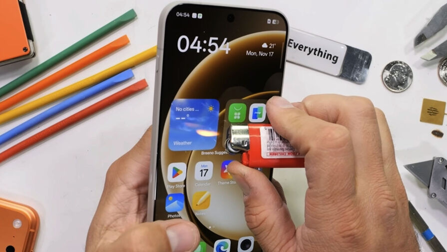Дополнительные испытания включали воздействие открытого пламени на дисплей — экран выдержал тест без видимых дефектов. Попытка согнуть корпус также оказалась безуспешной: устройство сохранило целостность конструкции, хотя при сильном давлении отмечалась временная деформация модуля камеры.