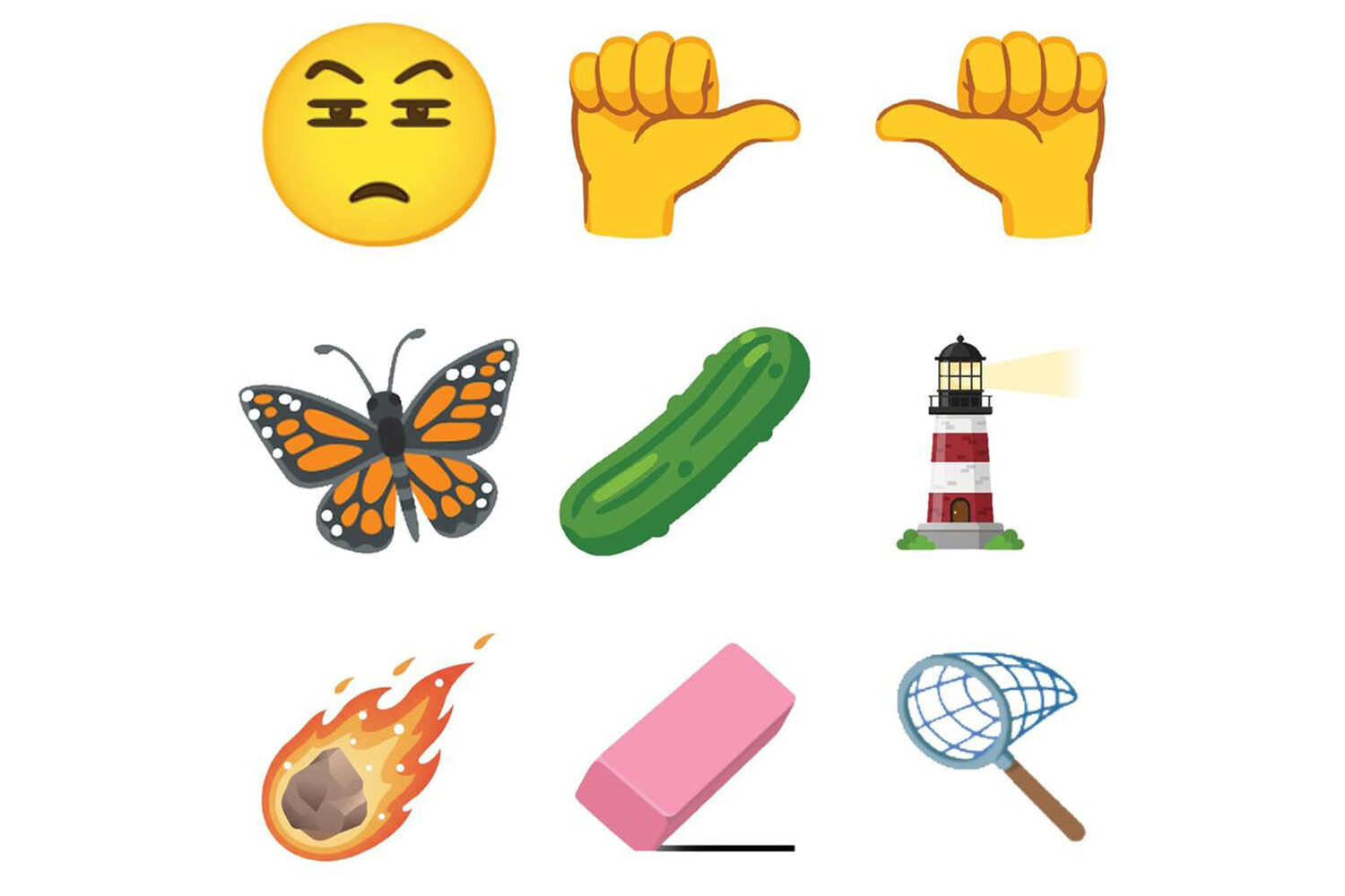 Список кандидатов был представлен консорциумом Unicode и включает такие символы, как прищуривающееся лицо, большой палец, направленный влево и вправо, огурец, маяк, метеор, ластик и сачок с ручкой. Также предлагается добавить отдельный символ бабочки-монарха как альтернативу уже существующей общей бабочке.