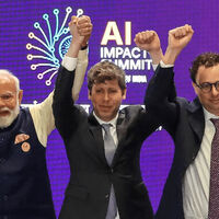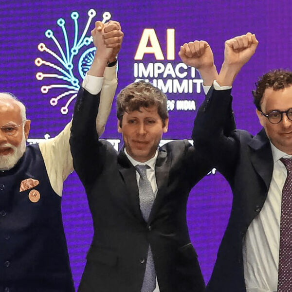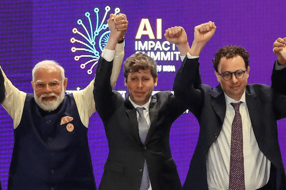 Глава OpenAI Сэм Альтман и руководитель Anthropic Дарио Амодей демонстративно отказались пожать друг другу руки во время фотосессии на саммите по искусственному интеллекту в Нью-Дели. Об этом сообщает Bloomberg.