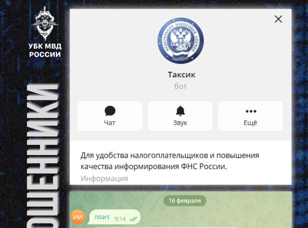 Мошенники создали чат-бот, который копирует оформление Федеральной налоговой службы (ФНС) России. Об этом сообщается в Telegram-канале управления по организации борьбы с противоправным использованием информационно-коммуникационных технологий МВД РФ.