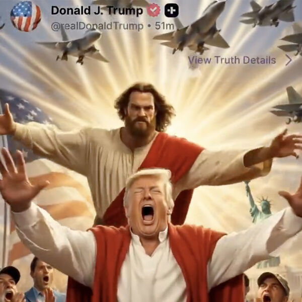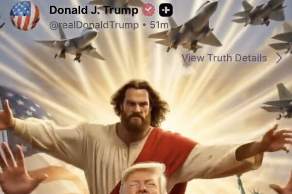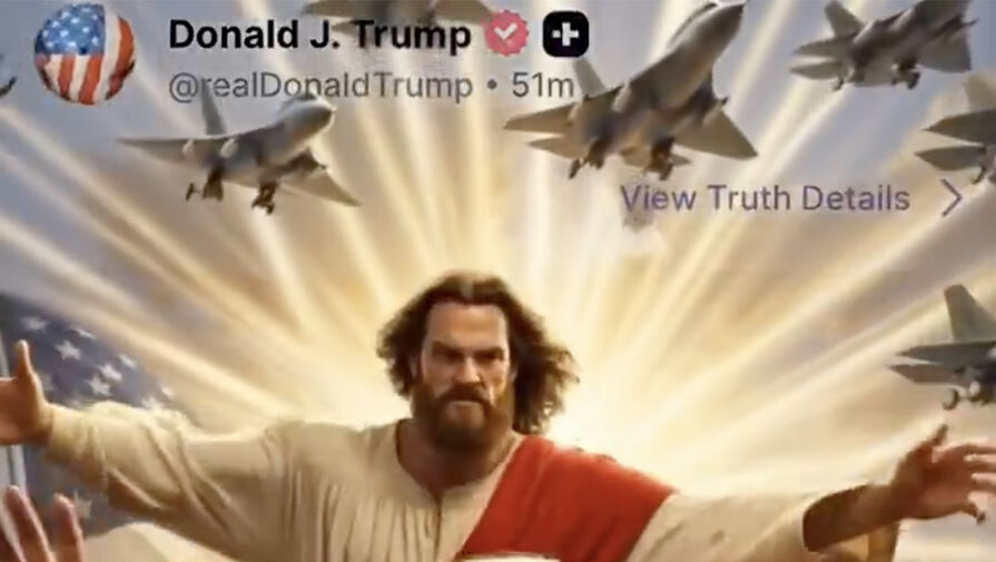 На видео Иисус обращается к Трампу со словами о наступившей расплате, после чего наносит ему удар и тот падает в огненную пропасть. Публикация стала реакцией на ранее размещенное Трампом в соцсети Truth Social изображение, где он представлен в образе Иисуса, исцеляющего человека.